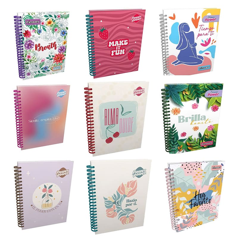 Cuaderno 95 argollado 5 materias mixto FLOWER POWER PRIMAVERA